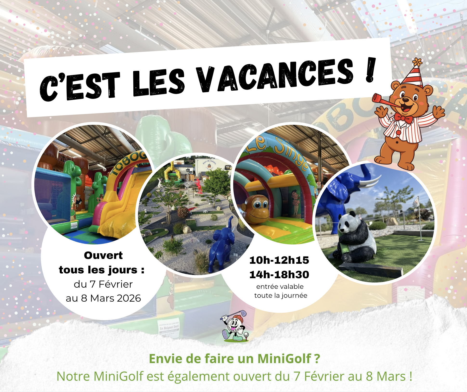 Le Parc de jeux et le Minigolf sont ouverts les Mercredi, Samedi & Dimanche de 10h à 12h15 & de 14h à 18h30.